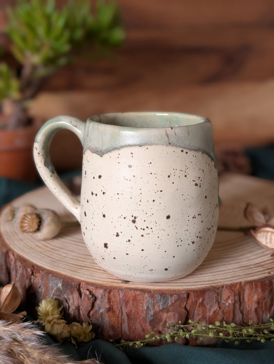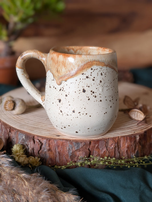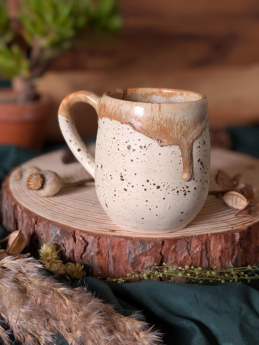 Bullfinch Speckled Wonky Cup with Drippy Glaze